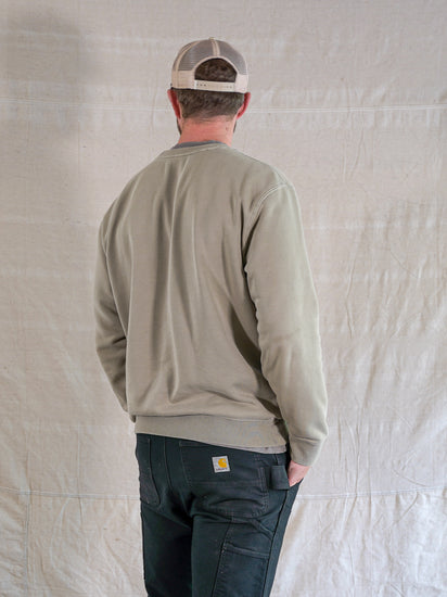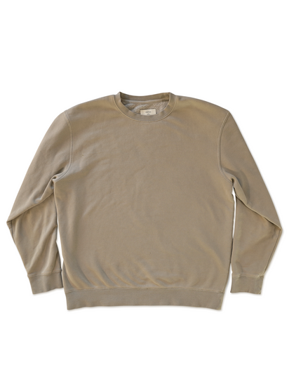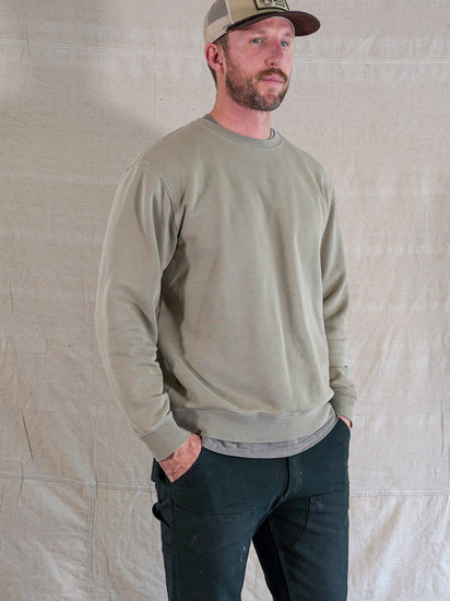 The crewnecks heritage stems from 'crews' on navy ships. A more versatile layering garment was desired to replace heavy wool jackets. To this day the Crewneck should still hold a place in everybody's wardrobe. Our Carmel Crew captures the heritage silhouette of the style with perfect fit and fabrication. Cut from an organic 9 oz cotton french terry, with a light brush for softness. Garment dyed to give each sweatshirt a unique faded color and warn in feel.